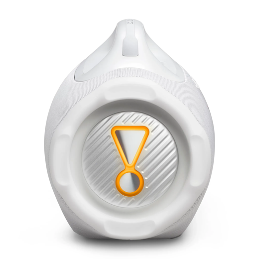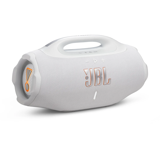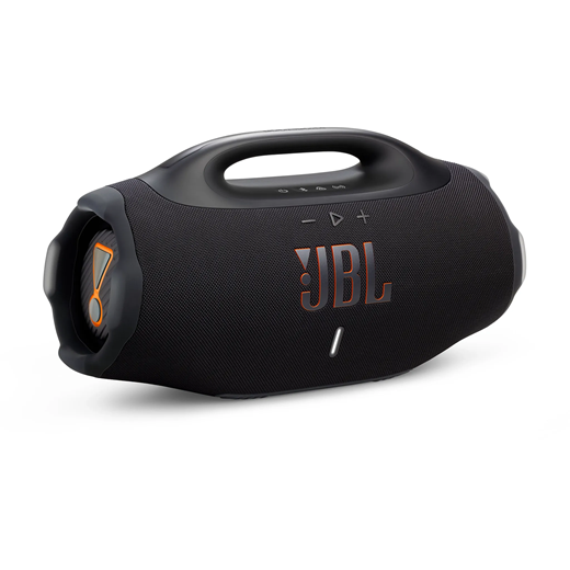 The all-new JBL Boombox 4 is bigger, bolder, and better than ever, with powerful JBL Pro Sound that stays loud and clear, with deep thumping bass. AI Sound Boost analyzes our music in real time and adjusts the sound to give us more power with less distortion, even when we turn it all the way up. It packs two bigger woofers, two tweeters and three